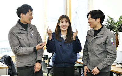 当社の働きやすさは、残業時間や年間休日などの福利厚生のみではありません。職場の雰囲気や仕事内容も働きやすさの理由。