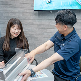 「窓やエクステリアの基本的な知識はもちろん、仕事に必要なことはすべて入社後に丁寧にお教えします!メーカーのショールームに一緒に行ったり、工事現場を見たりと完成品を見て学べる機会もたくさんご用意します」(江田課長)
