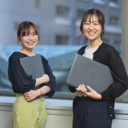 配属後も先輩たちにフォローしてもらえて、安心してスタートできました。私がそうしてもらったように、後輩たちにも親身になって教えてあげられるように心がけています。これからチャレンジする方も、ぜひ安心して飛び込んできてほしいです!」
