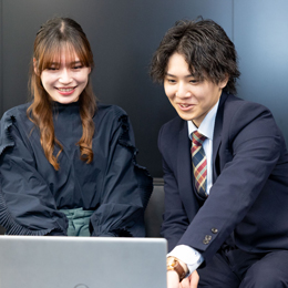 配属後も先輩たちにフォローしてもらえて、安心してスタートできました。私がそうしてもらったように、後輩たちにも親身になって教えてあげられるように心がけています。これからチャレンジする方も、ぜひ安心して飛び込んできてほしいです!」