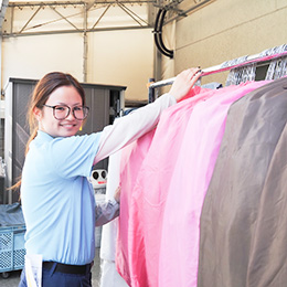 といった業務を通じ、快適で健康的な環境づくりのお手伝いをしています。川口工場では、ホテル・飲食店などを中心に、ユニフォームのお届け・回収を行っています。