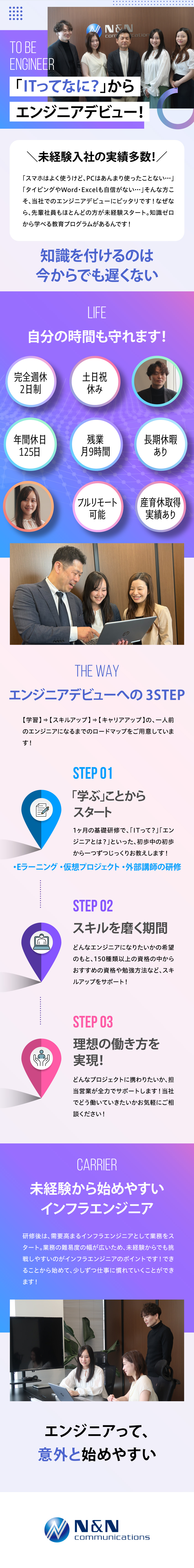 近年需要が高まるインフラエンジニアは、難易度の幅が広く多様な案件に挑戦できるとのこと。最初のうちはコミュニケーション力を活かしたり、マニュアルをしっかりと理解し作業を進められる方であれば、IT経験が浅くても活躍できるとのこと。その後ネットワークやサーバーの設計、クラウド案件など専門的な技術を身につけられるそうです。