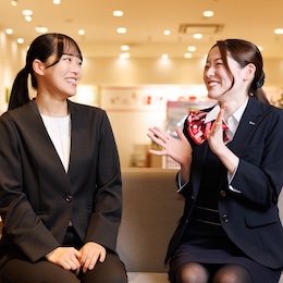 初めは不安もありましたが、基礎から学べる研修と周囲のサポートのおかげで、自信を持ってお客さまに向き合えるように。お客さまのために真剣に考える先輩の姿に触れ、私もこんな風に寄り添いたいと思えました。