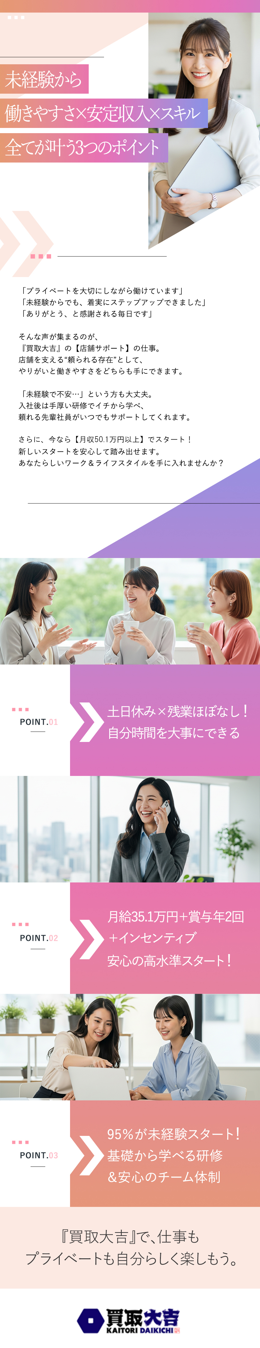 NEW【運営サポート/事務】特別手当あり◆『買取大吉』のFCオーナーのサポート業務◆土日休◆残業少