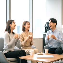 休憩中は、仕事の相談はもちろん、プライベートな話題でも気軽に話せる雰囲気です。