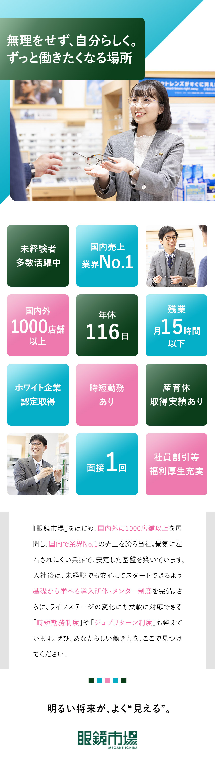 メガネコーディネーター/業界シェアトップ/残業15時間以下