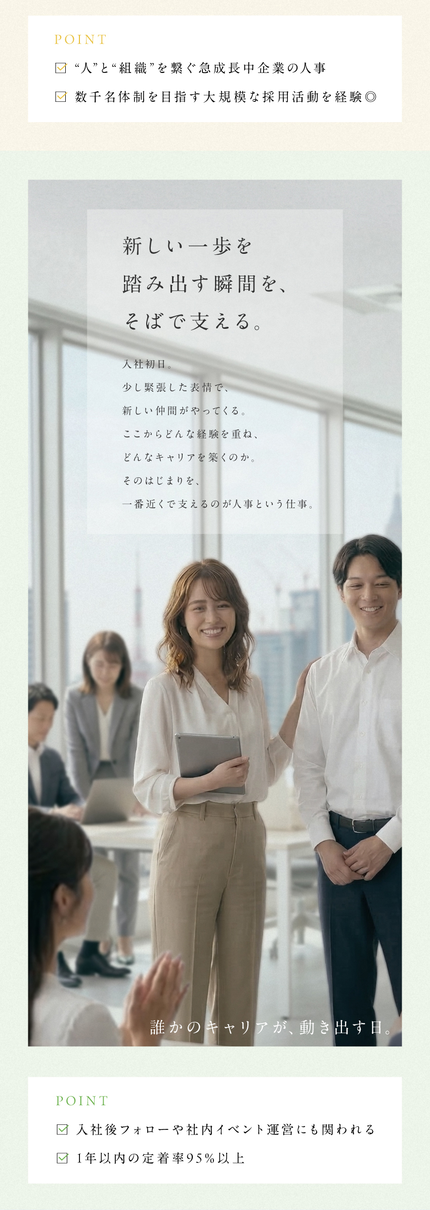 NEW【東京】人事採用◆採用戦略~企業ブランディング◆20代の人材支援事業展開/年休120日