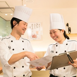 接客マニュアルがわかりやすく、“お客さまを笑顔にしたい”想いがある方にはピッタリの環境です。キッチンは機械化が進み、効率化されているので接客に専念できるのも嬉しいポイントです!