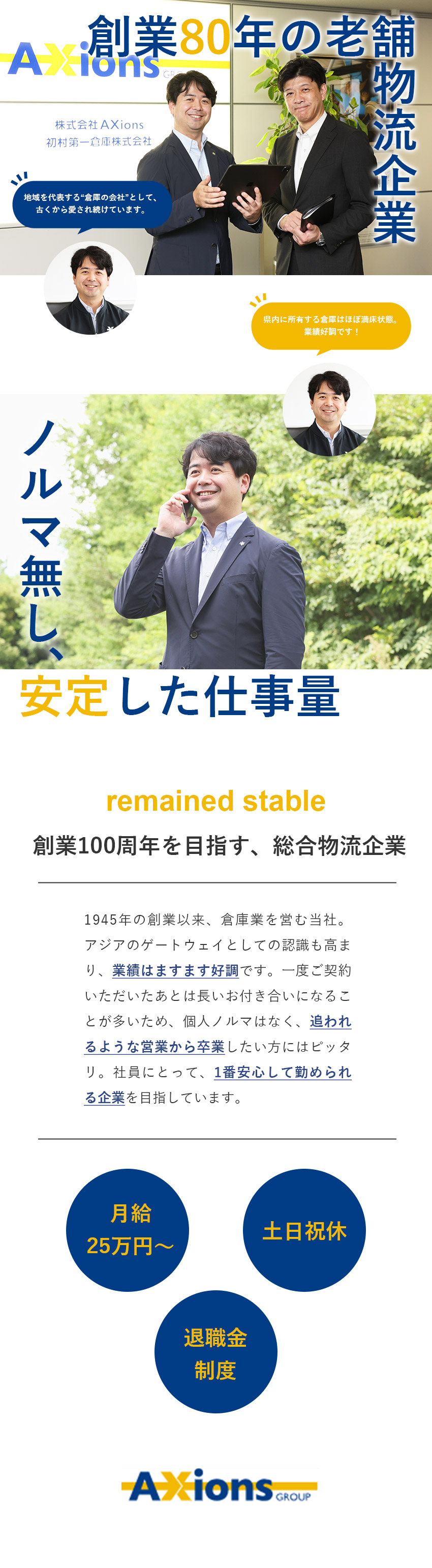 【物流倉庫のソリューション営業】既存顧客中心/地域に密着した老舗安定企業/未経験も安心の研修制度