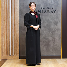 内装に合わせたシックな制服でお客様をお迎えします。