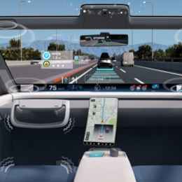 主力事業②:大画面透明ディスプレイや3Dハイレゾリューション対応のオーディオシステムを搭載した車両。