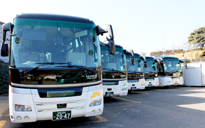 当社は貸切観光バスや企業間の送迎バスをはじめ、さまざまなバスを運行しています。