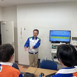安全意識向上に向けた映像を社内で作成。これを用いて朝礼でキャストの方に説明しています。