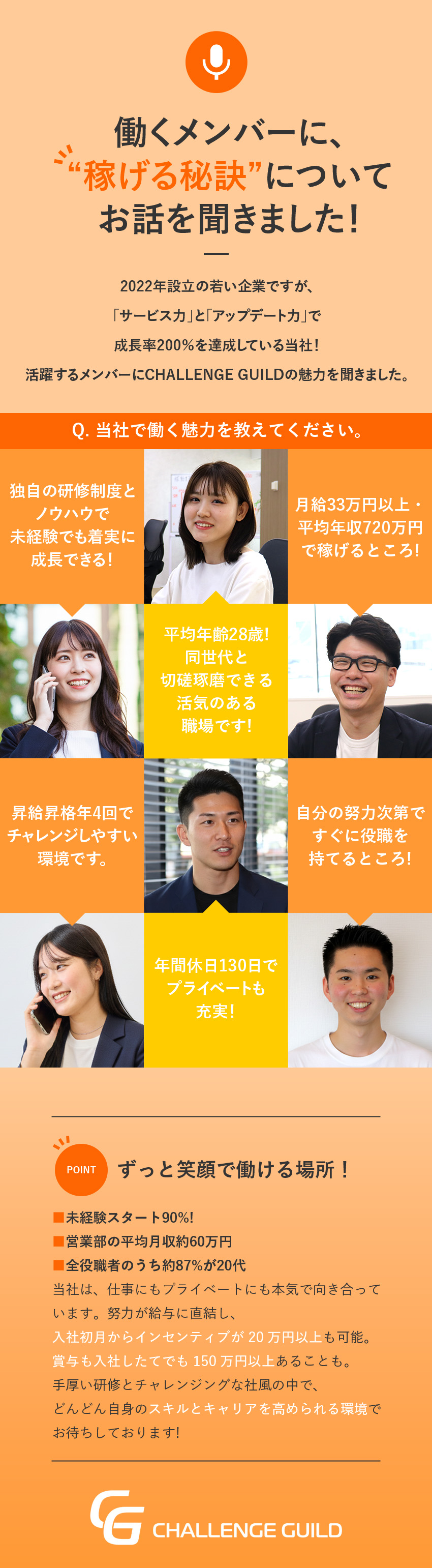 営業として必要な商品知識やノウハウはすべて入社後に学べるため、とにかく「稼ぎたい」「挑戦したい」という前向きな意欲さえあればOKという同社。