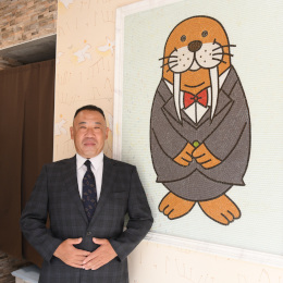 当社のマスコット「セイウチくん」に似ていると評判!?代表が同じポーズをとってくれました!(笑)