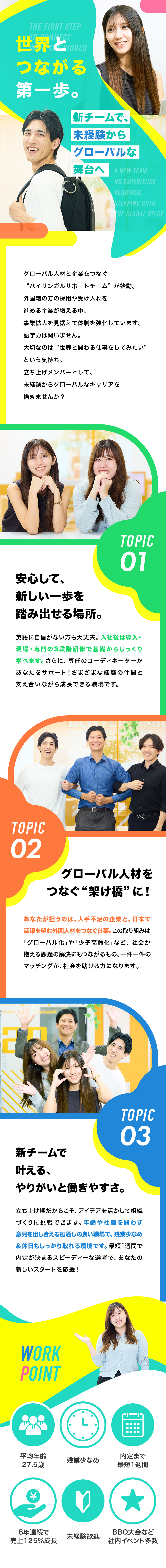 語学力は不問!世界とつながる仕事に興味がある方、“グローバルな環境”で新しい一歩を踏み出そう。