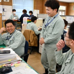 仕事は安全第一で真面目に行っていますが、決して堅い雰囲気ではありません。休憩時間やプライベートでの飲み会では、冗談を言い合うなど社員同士はとても仲良し!