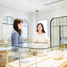 「人生の大きなライフイベントや記念日などでご購入されるジュエリーを扱うため、お客様一人ひとりの想いを汲み、理想の商品を提供することが求められます。物を売るだけではない難しさは感じます」