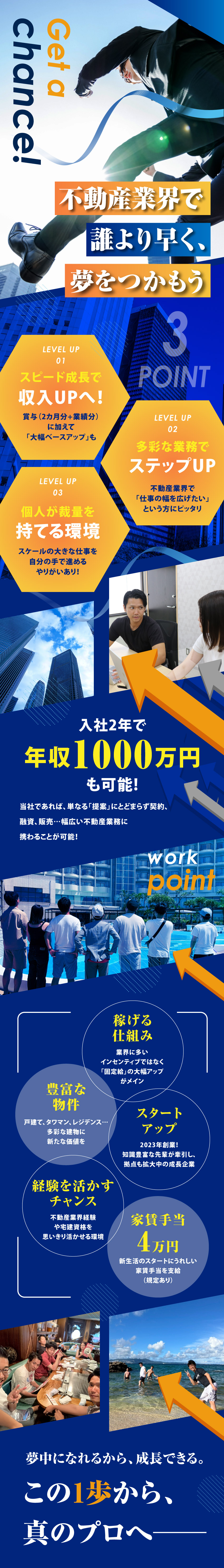 成長中のビジネスフィールドで、次世代の中心メンバーとして長く活躍したい方を募集しています。不動産再生、営業マネジメント、組織や事業のリーダーに興味のある方はぜひ積極的にご応募ください!