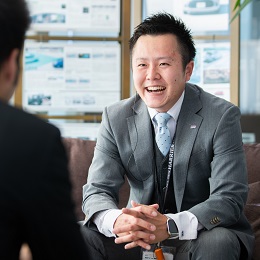 長いお付き合いを通じて、お客様との関係性を深めていくことができる点が一番のやりがい。車検や点検、乗り換えのタイミングなどを見越し、お客様のカーライフを先取りして提案をしていくことで、より一層営業として成長できるでしょう。