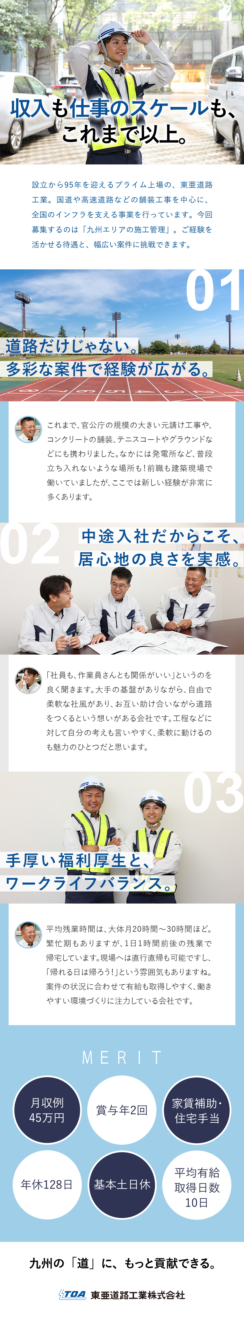 九州/総合職(土木施工管理・営業)月収例45万円・賞与年2回