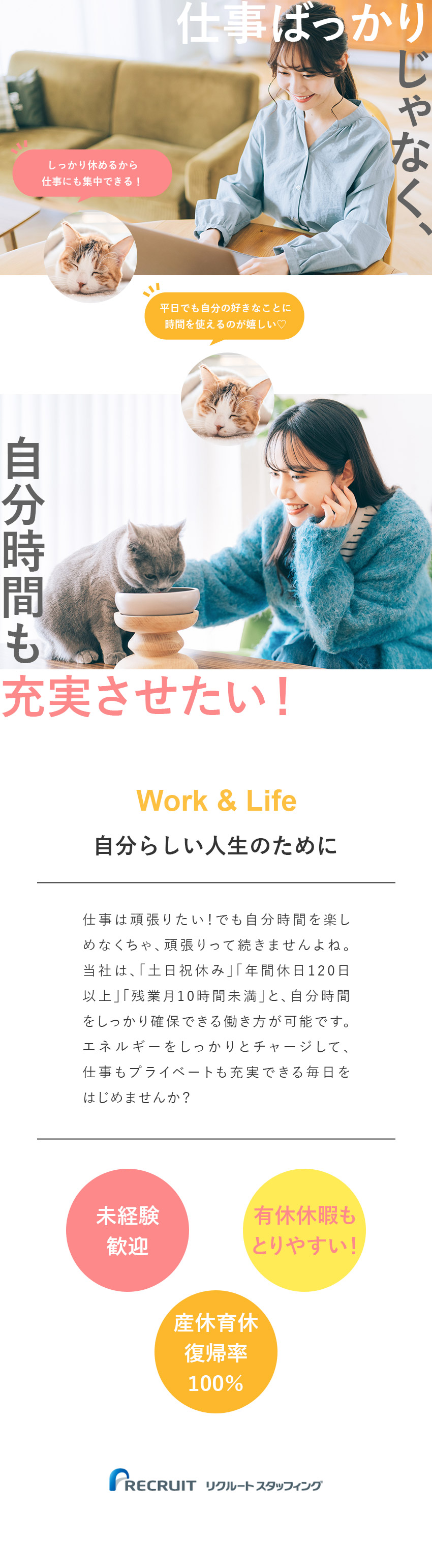 ゆったり働く事務(残業少なめ/年休120日以上/土日祝休み)