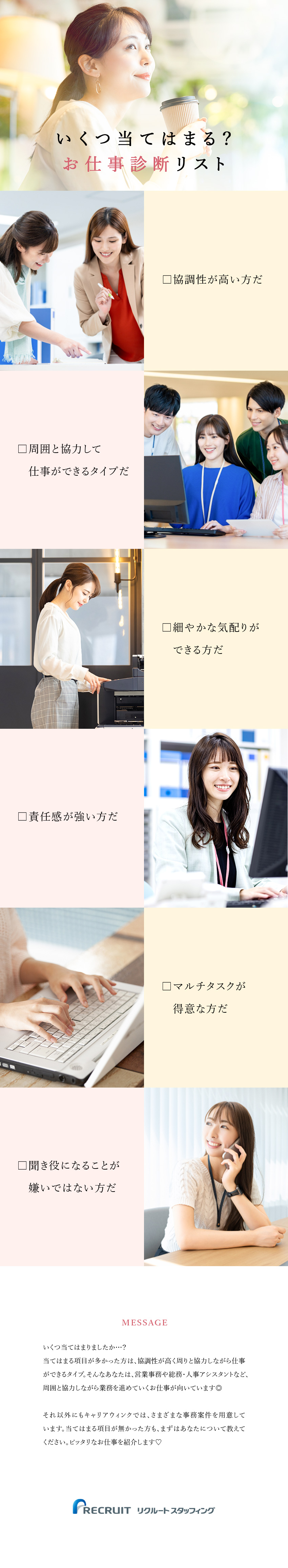 NEWリクルートグループで事務デビュー/就業先は大手企業/残業少