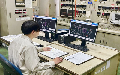 材料を投入したら、加熱や冷却のバルブを操作して、反応を促進させます。