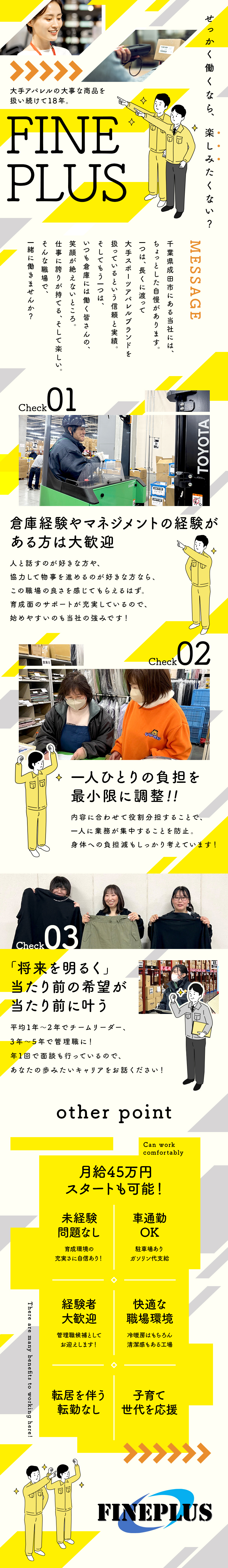 ※倉庫作業だけでなく、マネジメントにも関われるのがポイント!