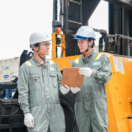 港での仕事は体力的にハードなイメージもありますが、実際には座学からスタートし、現場でも先輩が丁寧にフォローしてくれるとのこと。