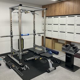 本社オフィスのジムでは空き時間に筋トレが可能。休憩スペースなどの環境面も充実しています!
