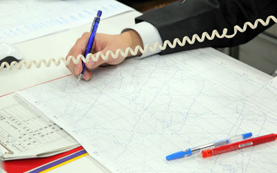 修繕作業が完了した車両を、主任・管理者が作業記録を確認しながら、最終チェックを行います。