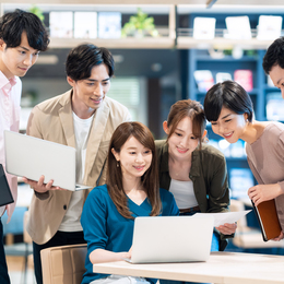 チームの仲間たちと、話題のスマホや通信サービス等の