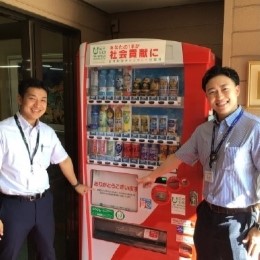 SDGsの一環としてチャリティー自販機を導入。利用するだけで社会貢献に寄与できると好評です。