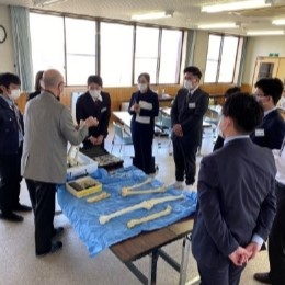骨の模型を用いた本格的な研修など教育体制も充実し、未経験から入社した若手社員たちも活躍しています!