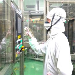 ・クリーンルーム内で無塵衣やクリーンブーツを着用して、業務に取り組みます。