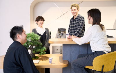 カフェのようなリラックス空間を取り入れたオフィスで、心地よく働ける環境を整えています。