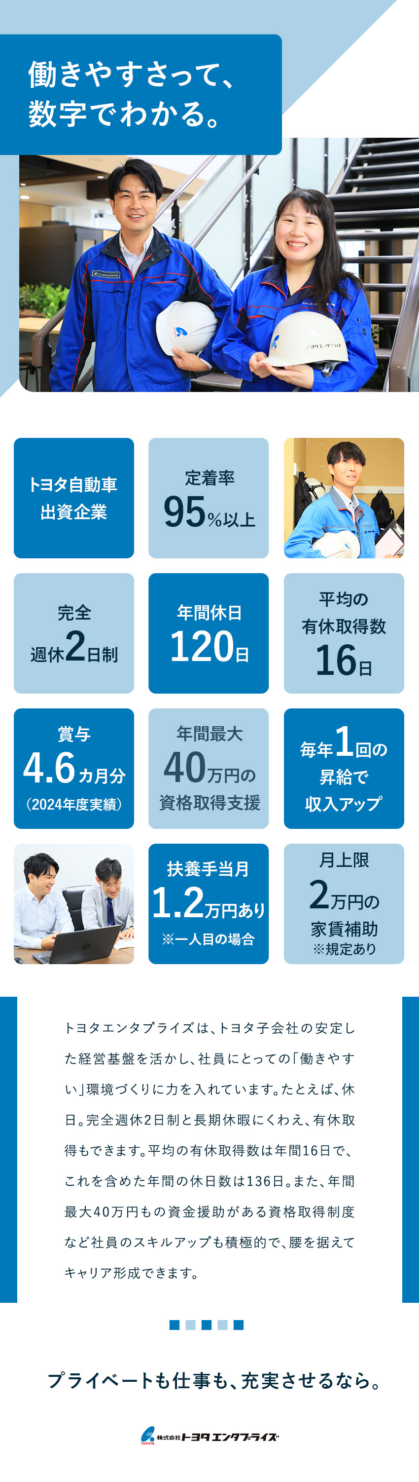 施工管理/トヨタ子会社で安定性抜群/平均の有休取得数年16日