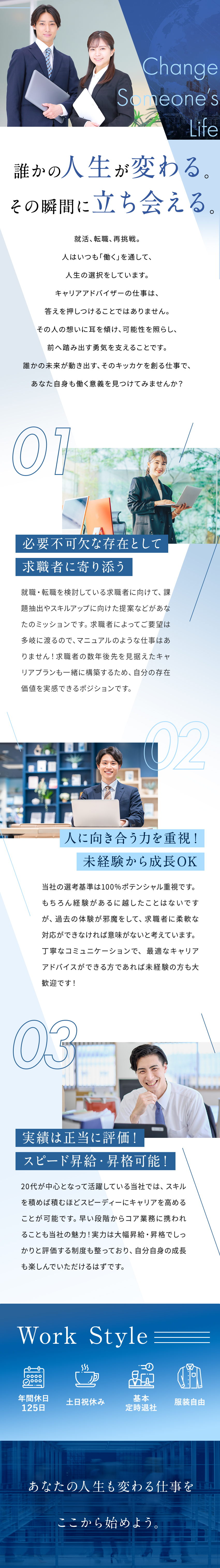 未経験歓迎/キャリアアドバイザー/転勤なし/賞与年2回