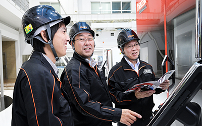 現場配属後も最低3カ月間は先輩社員に同行し、実務を通じて仕事の流れを覚えていただきます。