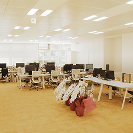 まだ新しいオフィスで、一人ひとりのスペースもしっかり確保された環境で仕事ができます。