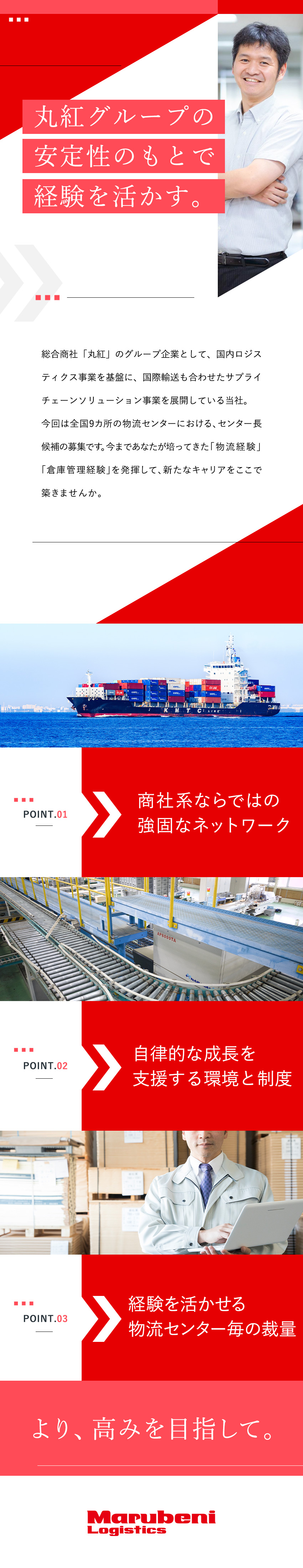 【三重/桑名郡】物流センター運営(センター長候補)◆夜勤シフトなし◆丸紅グループの総合物流会社