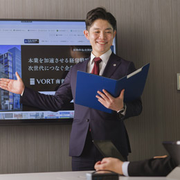 日本には優れた技術やビジョンを持ちながら、経営が困難な企業が数多く存在します。こうした企業の事業継続を支援し、経営者の想いを引き継げる点が大きなやりがいにつながります。有益な資産形成の提案を通じて、お客様から感謝の言葉をいただくことも多々。また、不動産、金融、資産形成、経営、M&Aと、幅広い知識を身につけ、より高いレベルの営業を目指せる点も弊社の魅力です。
