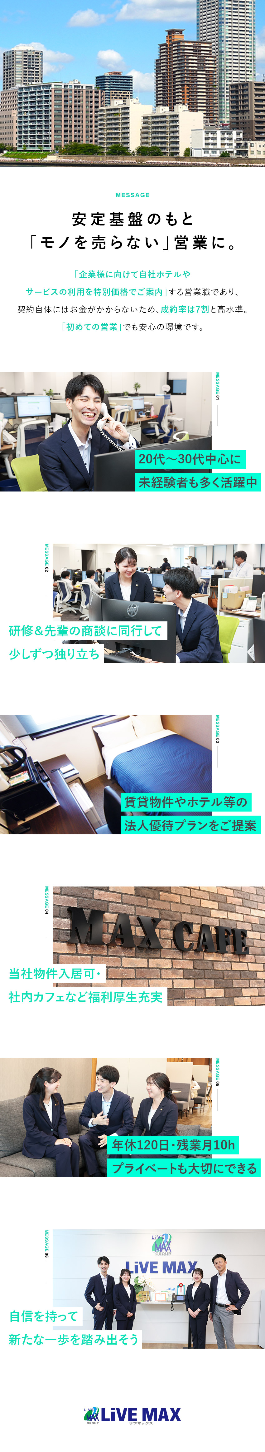 今回募集する法人営業では、企業さまへ向け自社のホテルやマンションを特別価格でご案内する仕事です。
