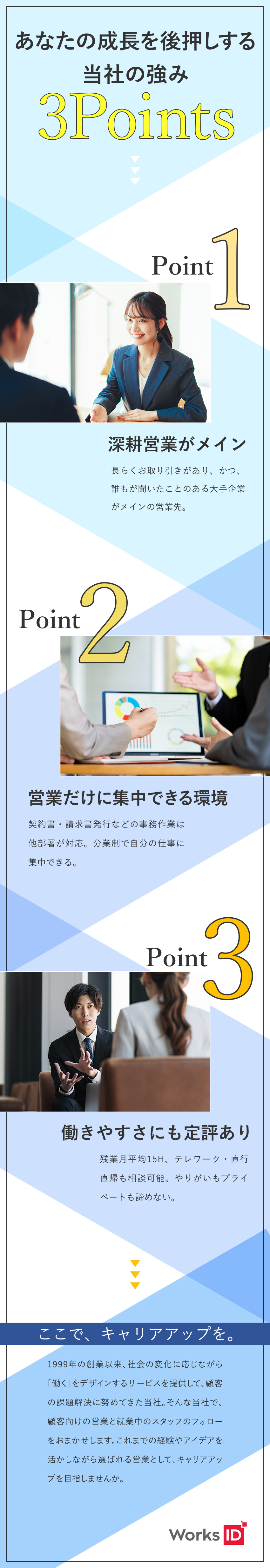 人材派遣営業/深耕営業/個人ノルマなし/直行直帰OK