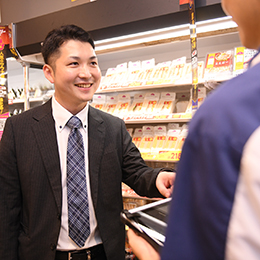 ミニストップの店長(オーナー)さんのパートナーとしてお店を盛り立てるアドバイスをするのが【ストアアドバイザー】の仕事です。棚のレイアウトやPOPを工夫したり、地域のイベントや傾向に合わせて売り出す商品を決めたり。各地で愛される店舗を作ることがミッションです。