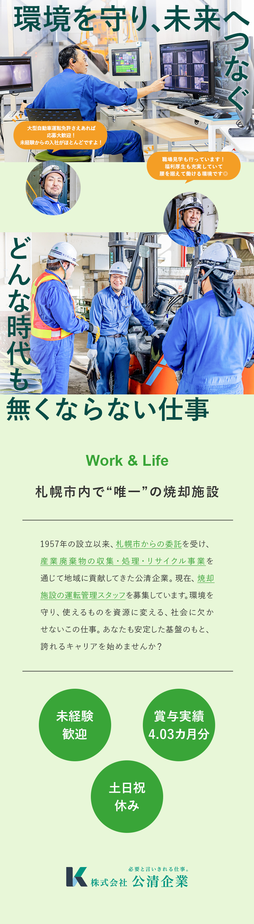 地域に欠かせない仕事を、安定の職場で。