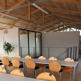自然光を取り込む設計と太陽光発電を採用した社屋は、2022年、省エネルギー機能に優れた新棟を建設。