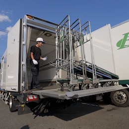 ・かご台車とパワーゲート(リフト)で積み下ろし!