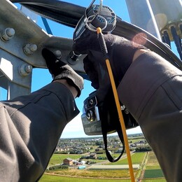 基地局は、鉄塔の上に設置されることも。高いところに登るのが好きで、この職を選ぶ人も多いです。